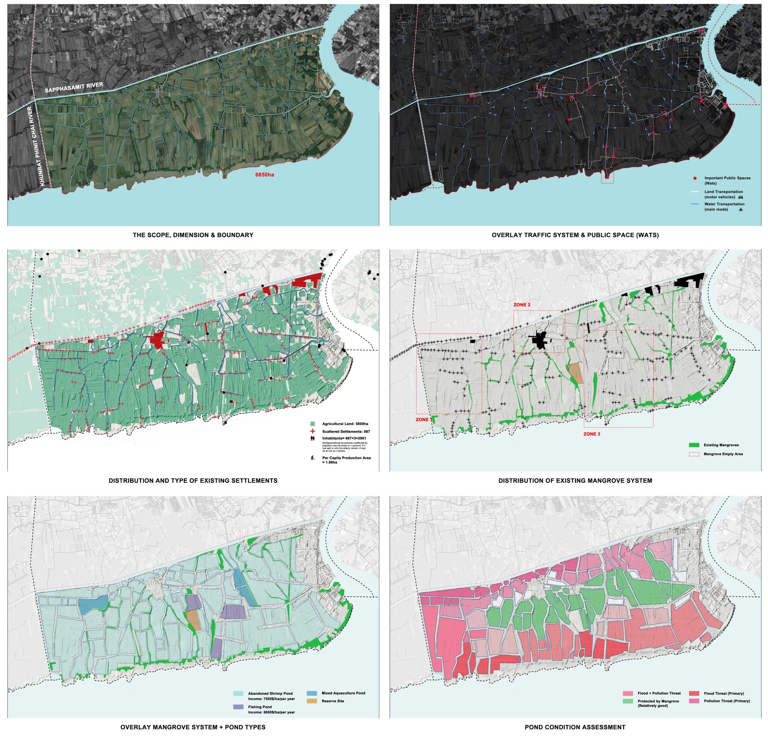 The irreversible acceleration of sea level rise poses a major threat to high-density urban areas like Bangkok and other coastal cities in Thailand that have been, until recently, protected by the coastal ecosytems of the Gulf of Thailand. These extensive coastal areas are typically inhabited by marginalized people. The most representative is at the mouth of the Chao Phraya River in Bangkok Bay. In response, my thesis proposes a novel, incremental landscape strategy to restabilize the marginalised coastal settlements along the Gulf of Bangkok. Through several spatial tactics, the project reduces the rate of land erosion and ameliorates the damage and impact of storm surges. This provides the context for the development of several industries corresponding to the sea level over different time periods. Each household would thus be able to continue to cultivation and develop a new livelihood without giving up their land. It is a feasible strategy that is replicable, thus providing a climate-adaptive survival model for other similarly, marginalised settlements along the Gulf of Thailand.