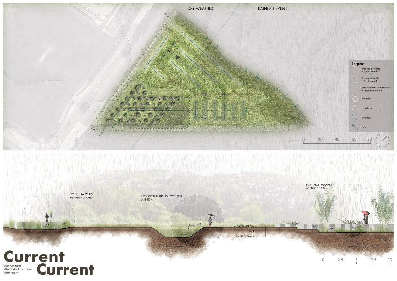 In sum, Current Current redefines the presence and temporality of the reserve site and its landscape identity within urban landscapes by amplifying and visualizing the behavior of runoff. Through the dialogue between runoff and historical footprints in the tropical context, the project positions itself as the Fifth Nature: a dynamic tropical landscape paradigm driven by water, shaped by historical traces, and orchestrated by a More-Than-Human network of agencies.