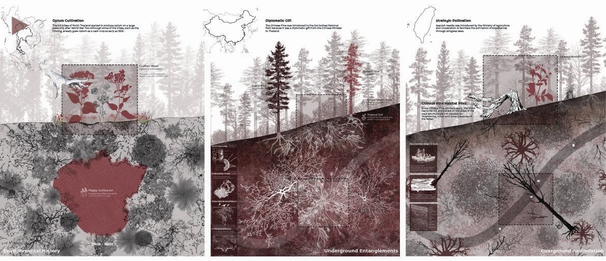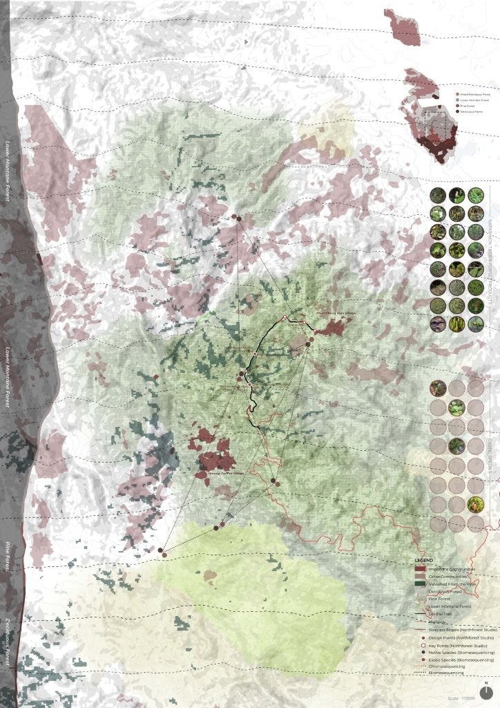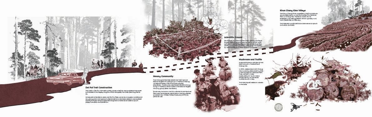 Spalding Landscapes is a landscape proposal situated along the Doi Pui Nature Trail within Doi Suthep-Pui National Park. The trail, one of seven educational routes in the park, connects the Hmong villages of Khun Chang Kien and Doi Pui while serving as a shared ground for ecological systems, local livelihoods, and scientific research. Currently undergoing upgrades, the site is poised to become a key tourism and education corridor, raising questions about how knowledge, conservation, and access are produced within a protected landscape.