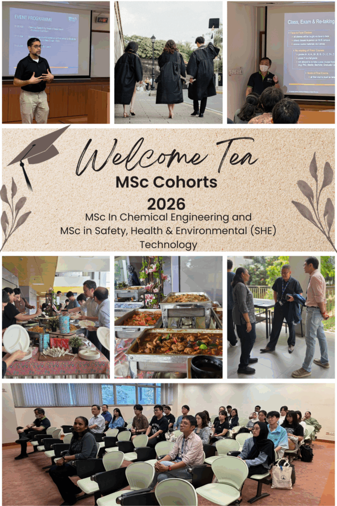 On 7 January 2026, the Department welcomed the new cohorts of the MSc in Chemical Engineering and the Master of Science in Safety, Health and Environmental (SHE) Technology. The session introduced essential academic and student support resources, offered guidance on navigating life at the National University of Singapore, and pointed students to ways to seek assistance.