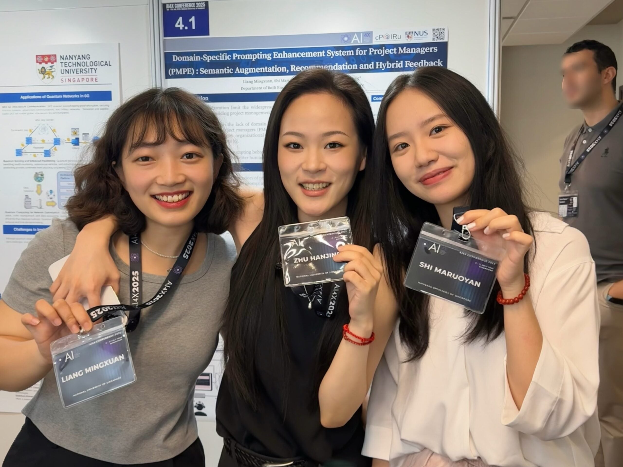 The poster titled “Enhancing Project Manager–GenAI Interaction: A Bidirectional Analysis for Construction Project Management” by Maruoyan Shi, Hanjing Zhu, and Mingxuan Liang from cPAIRu, under the supervision of Prof. Bon-Gang Hwang, received the Third Prize Poster Award at the AI4X Conference 2025, held at the National University of Singapore.