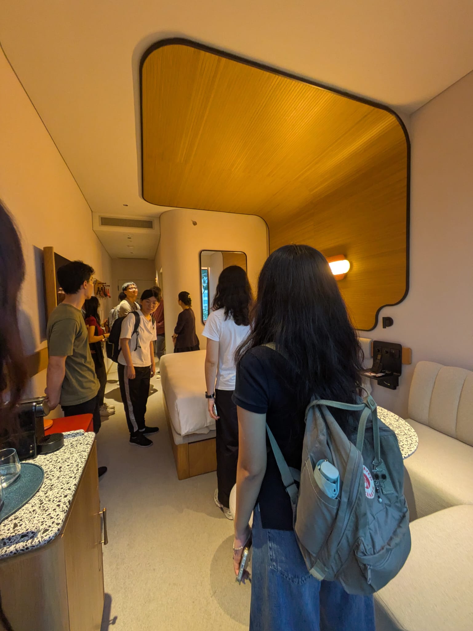 As the tour continued, D&E-Scholars learned about the design considerations and spatial constraints that influenced the project’s final layout. Mr Seah explained how limited space can inspire inventive solutions, highlighting that each feature in the guest rooms serves multiple functions to achieve creative efficiency and visual harmony.