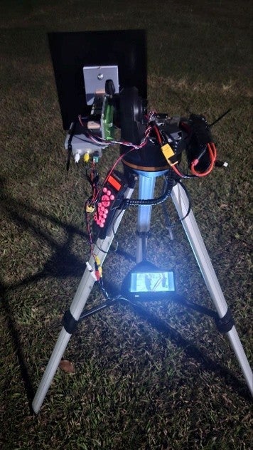 Figure 2 Automatic tracking antenna at launch site (Left). Student with supporting from BEAR team.