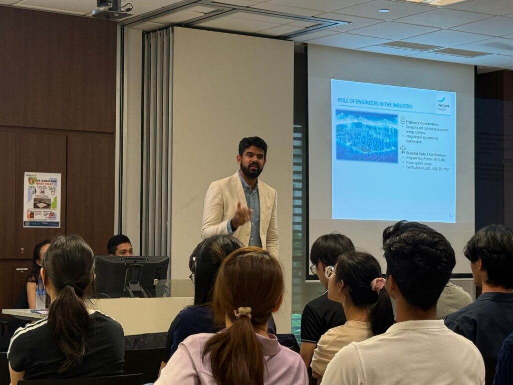 The Verdant Energy – NUS Fireside Chat, held on 24 February 2025 at University Town, NUS, brought together E-Scholars and industry leaders for an engaging discussion on renewable energy and the evolving landscape of sustainable power in Southeast Asia. The session was led by Verdant Energy’s CEO Alan Yau, Chief Information Officer Sivaramakrishnan Sreedharan, and