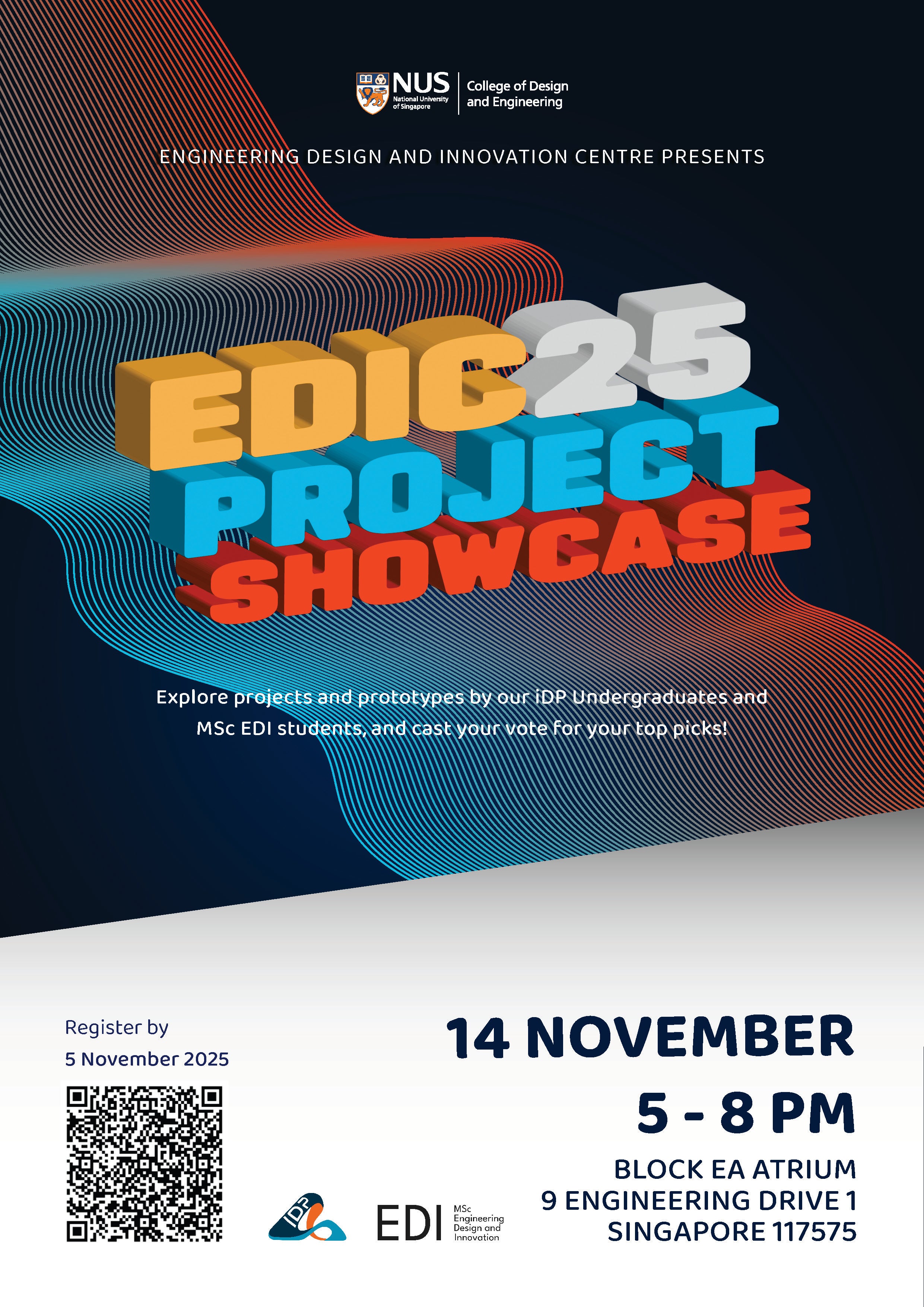 This semester’s EDIC Project Showcase will feature projects from Year 3 students in the Innovation and Design Programme (iDP) who are completing CDE3301 Ideas to Proof-of-Concept this semester and MSc EDI students in the CDE5312 Beyond the Surface: Exploring Interactive Wearables course.