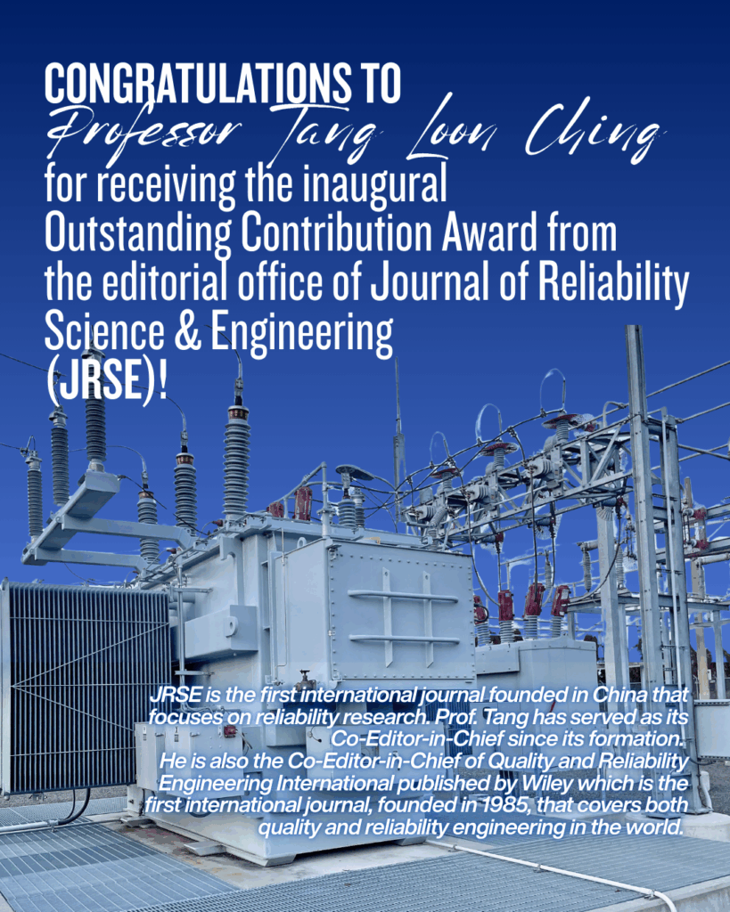 Prof Tang has served as its Co-Editor-in-Chief since its formation. He is also the Co-Editor-in-Chief of Quality and Reliability Engineering International published by Wiley which is the first international journal, founded in 1985, that covers both quality and reliability engineering in the world.