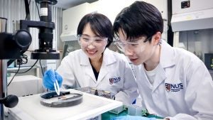 Asst Prof Tedrick Lew’s latest research breakthrough is a core–shell “microneedle patch” that releases its cargo only after entering plant tissue.